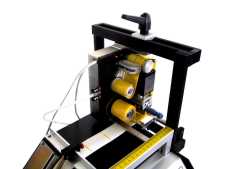 The SUHR model Sc-390 is a fully-automatic, hot-foil integrated marking device which can be mounted on any SUHR strip cutter (hot and cold) powered by microprocessor. This device makes a simple, single-colour mark on virtually any material automatically as the machine is measuring to length. The location of the mark(s) is controlled by a small hand-held computer module. This module is easily programmed by the operator, using special software supplied with the device. The computer module also serves as a memory module for all cutting and marking production data. The printing operation is similar to that of a typewriter imprint. A heated, pneumatically-driven marker die strikes the special release foil and imprints the mark onto the material. The colour of the mark is determined by the roll of foil, which can be easily changed. | |||||||||||||||||||||